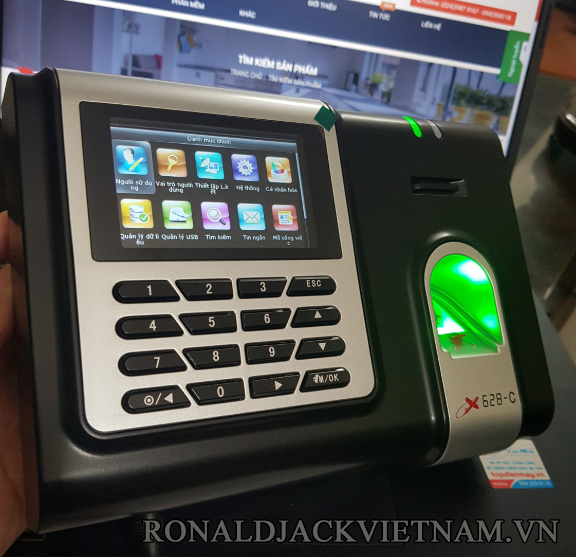 Hệ thống máy chấm công RONALD JACK X628-C, là sự kết hợp giữa sản phẩm phần cứng nhập khẩu từ nước ngoài và phần mềm chấm công tiếng Việt (Roald Jack Plus, Mita, Mita pro,ON39) của công ty Việt Nhật. Thiết bị được tích hợp sử dụng Vân tay-Thẻ cảm ứng. Máy chấm công Ronald Jack X628-C rất dễ sử dụng, chi phí đầu tư thấp. Do đó, thích hợp cho tất cả các Công ty, nhà xưởng trên mọi miền Việt Nam.