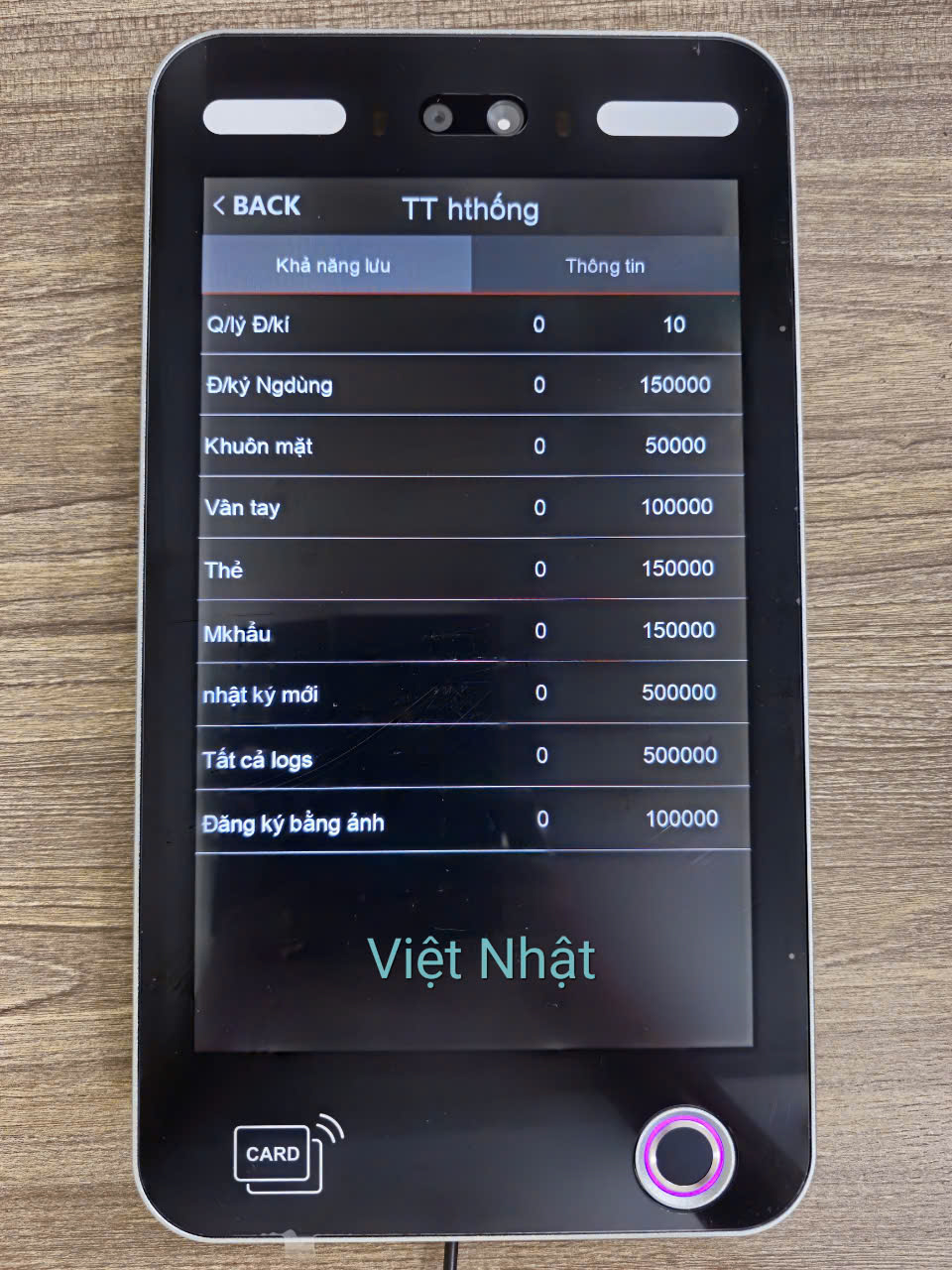 - Dung lượng người dùng: Khuôn mặt / ID / IC / Mật khẩu /: 50.000 khuôn mặt, Dấu vân tay: 100.000, Thẻ IC hoặc ID 50.000 (Máy có chức năng đặc biệt dùng được cả 2 loại thẻ IC hoặc ID)