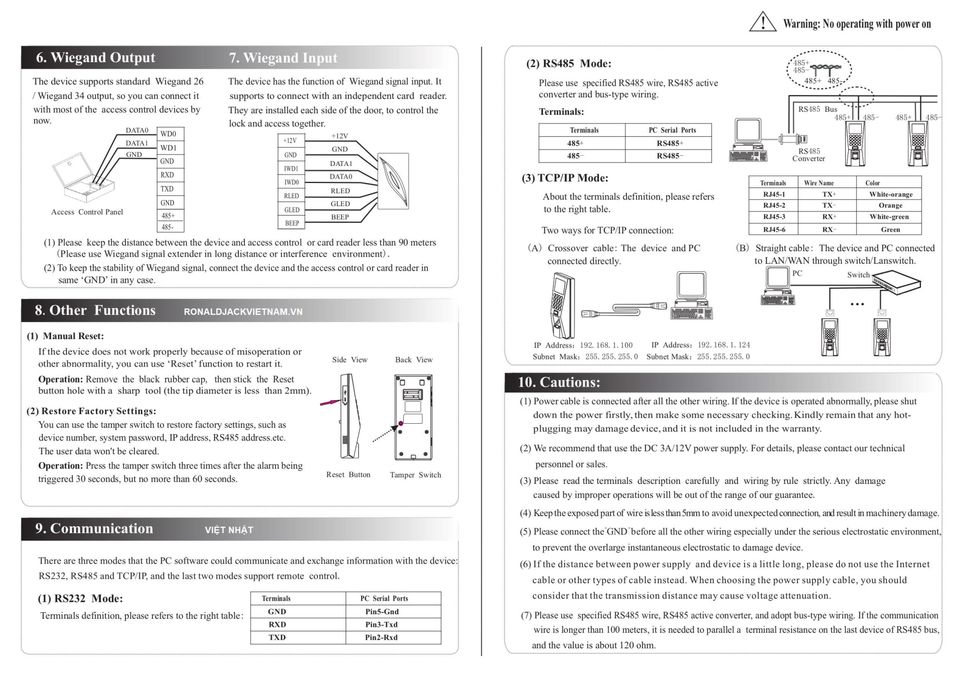 SƠ ĐỒ ĐẤU NỐI MÁY CHẤM CÔNG F18